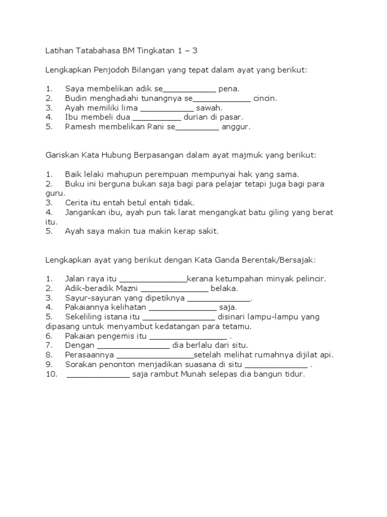 Latihan Tatabahasa Bm Tingkatan 1 Pdf